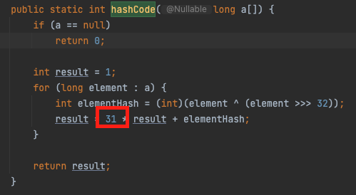 곱한 숫자를 31로 정한 이유는 31이 홀수이면서 소수이기 때문이다. 만약 이 숫자가 짝수이고 오버플로가 발생한다면 정보를 잃게된다.