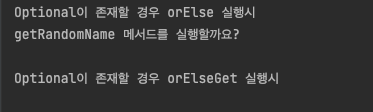 System.out.println("Optional이 존재할 경우 orElse 실행시");