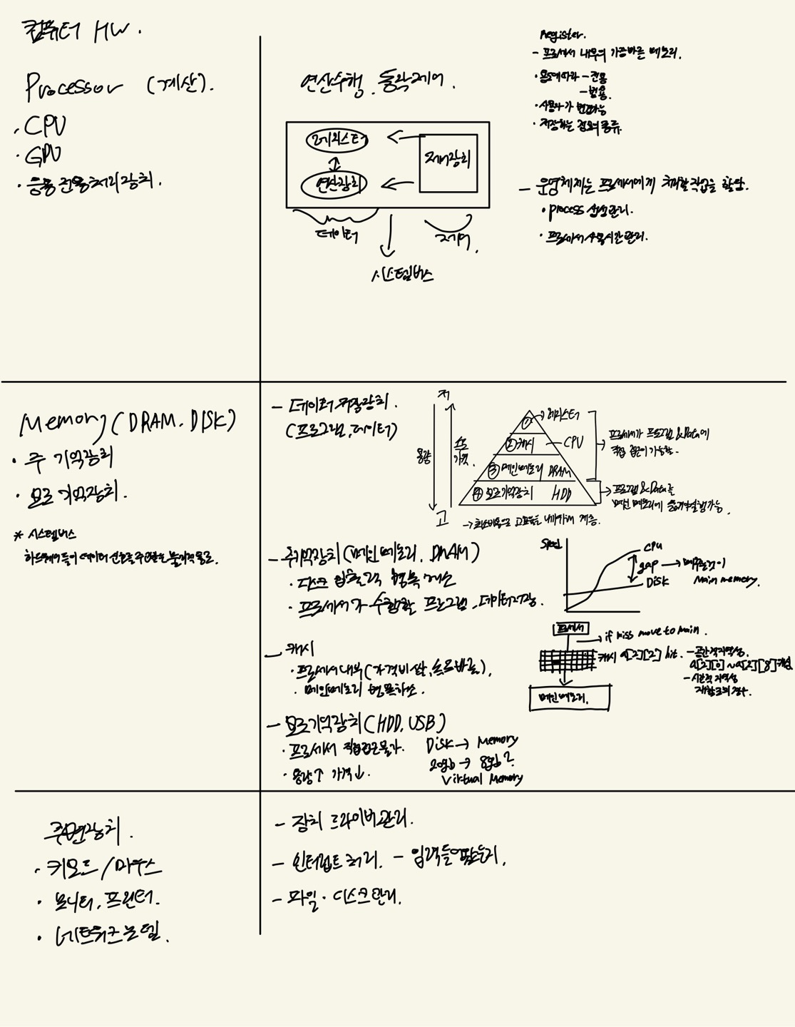 프로세서는 연산을 수행하고, 동작을 제어하는 하드웨어이다. 크게 CPU, GPU가 존재한다.