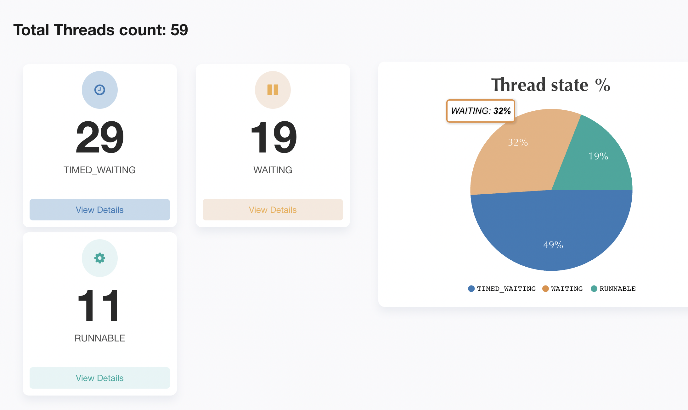 - 현재 동작하고 있는 application의 Threaddump를 떠서 점검할 수 있습니다. threaddump 보는 법