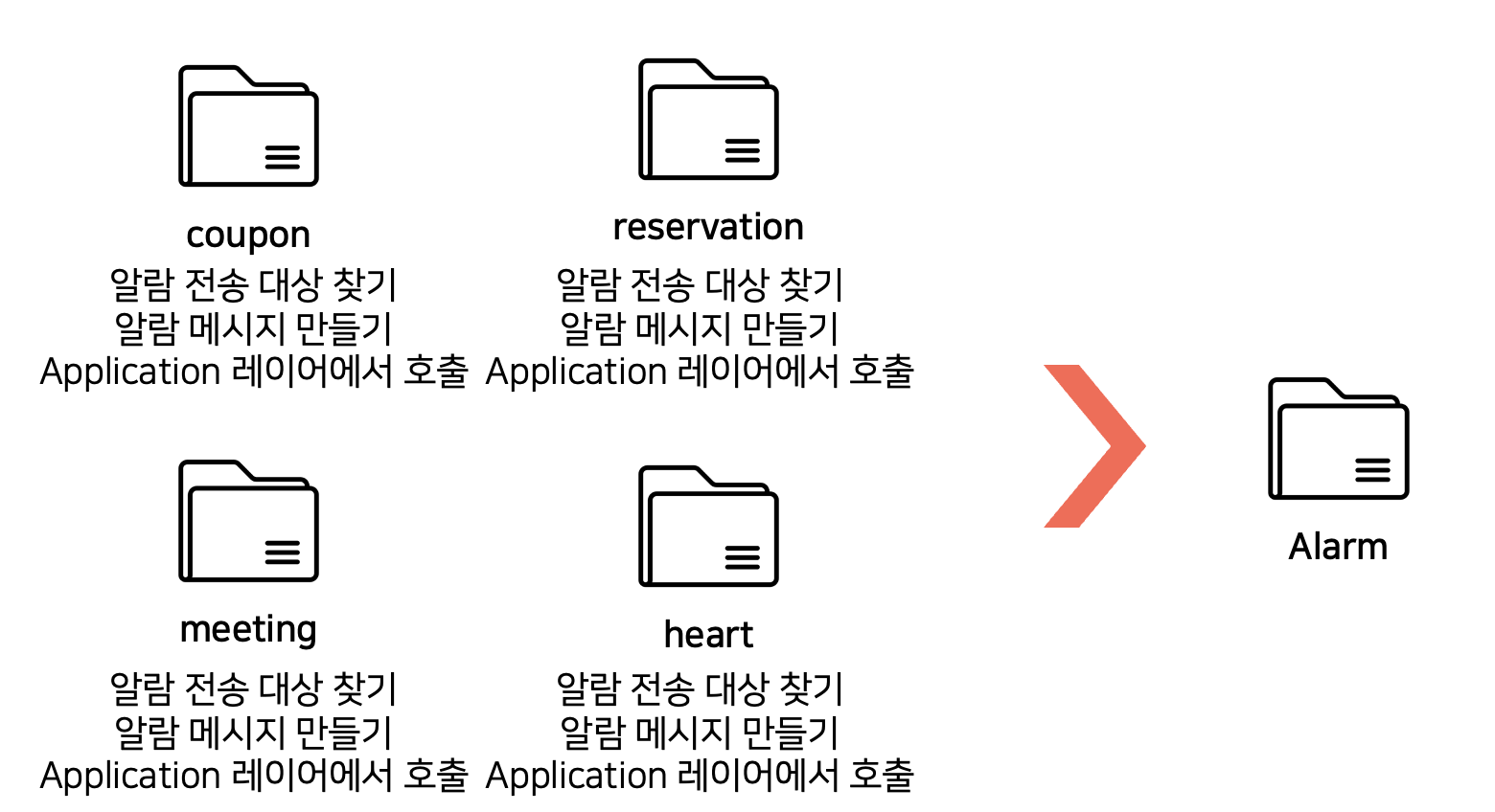 마음 도메인을 개발하는 과정에서 기존에 존재하는 알람 서비스를 이용해야 했습니다. 하지만 다른 코드들을 분석해보니 위 그림과 같은 형태였습니다.