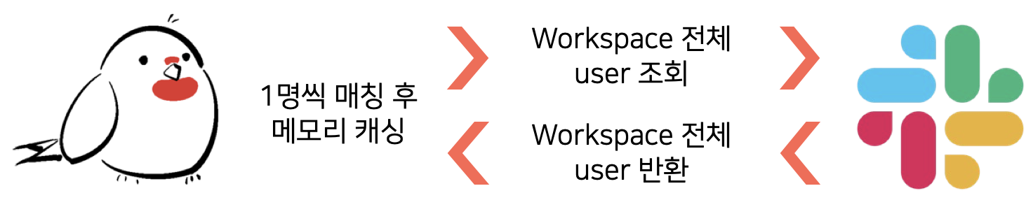 슬랙으로 알람을 전송하려면, 슬랙에서 제공하는 user의 token값이 필요합니다. 하지만 저희는 Google Oauth를 이용하고 있었기 때문에 특정 워크스페이스의 token값을 DB에 저장하고 있을 수 없었습니다. 따라서 매번 알람이 발생하면 Slack workspace에 요청하여 모든 유저의 token을 가져왔고 email 주소로 token을 저장해두었습니다.