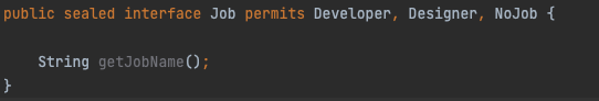 코틀린을 사용해보신 분들이라면 익숙하실텐데요. 코틀린에서는 sealed class 내부에만 하위 클래스를 중첩하여 작성하는 형태로 상속을 하여. 패턴 매처 기술과 접목하여 하위 클래스를 안정적으로 관리할 수 있었는데요. java 에서도 거의 유사하지만 조금 다른 점이 있다면, 동일 모듈 / 패키지 내 클래스를 permits라는 키워드에 등록해놓고 사용할 수 있다는 것입니다.